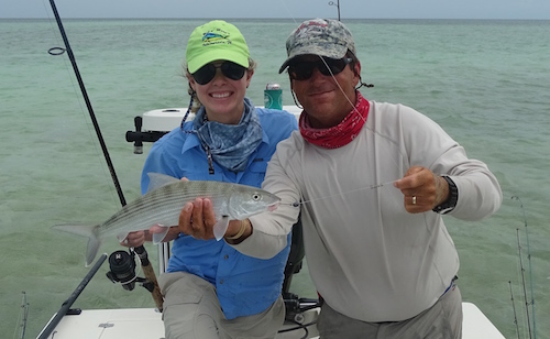 Kara caught her first tarpon and teamed up with her dad to catch 2 bonefish on a morning outing.