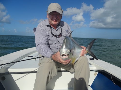Mike fought several days of strong win but held tough to catch 3 bonefish including his personal best a 8lber and 2 permit including a personal best 24lber all on fly...