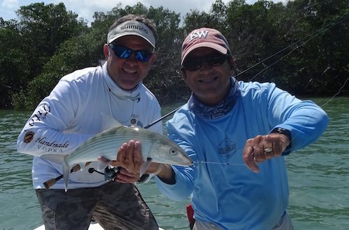 Kevin and Robbie teamed up to catch a bunch of barracuda and 4 bonefish. Kevin topped the day off with his first permit..