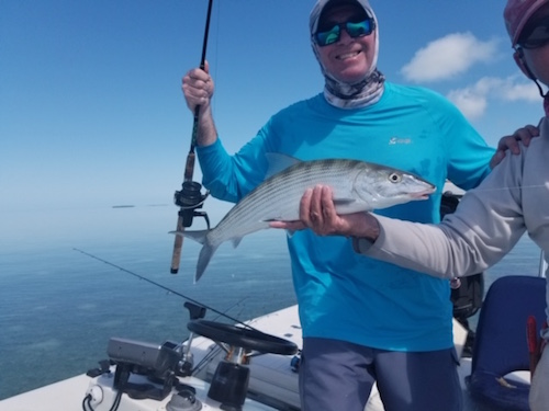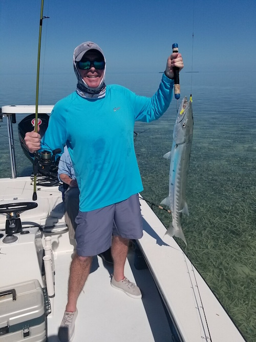 David and Bob teamed up to catch 2 barracuda and 5 bonefish including a 10lber...