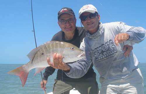 Jay and Barry teamed up to catch 4 bonefish. Jay also caught a nice permit and a rare flats mutton snapper...