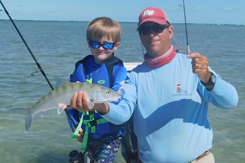 Paul proudly watched 7 year old Noah catch his first bonefish and several small sharks. Paul also caught his first bonefish.