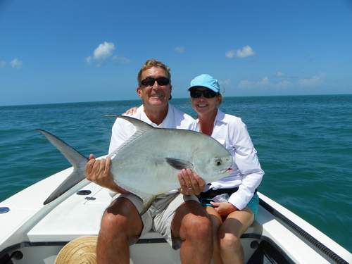 Roy started the morning off by catching 2 big tarpon. Roy and Julie topped the day off by each catching nice permit...