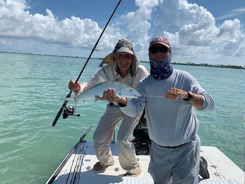 Jeff and his mom Jan (1 month shy of 85 years young) teamed up to catch 2 big tarpon, 6 bonefish and 2 permit giving them a Double Grand Slam...