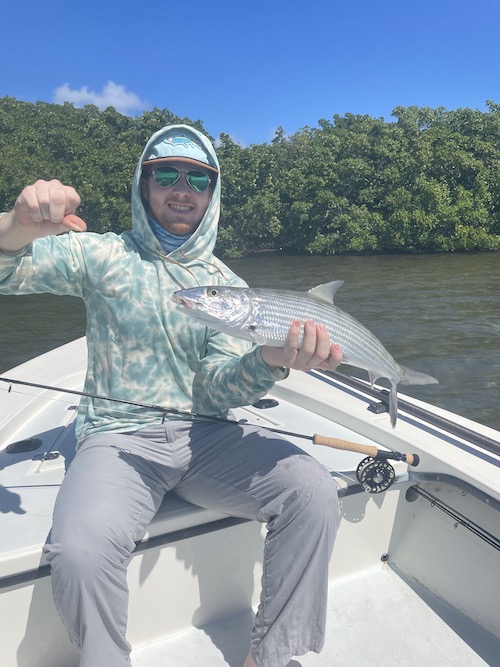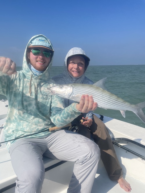 Donna proudly watched James catch his fish 5 bonefish on fly...
