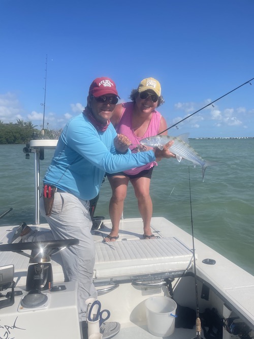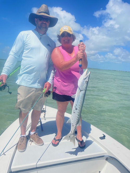 Shannon started the day off with a 125lb. tarpon, 15lb permit and a bonefish giving her a Grand Slam... Paul then caught 2 bonefish and a permit. Shannon topped the day off with a nice barracuda...