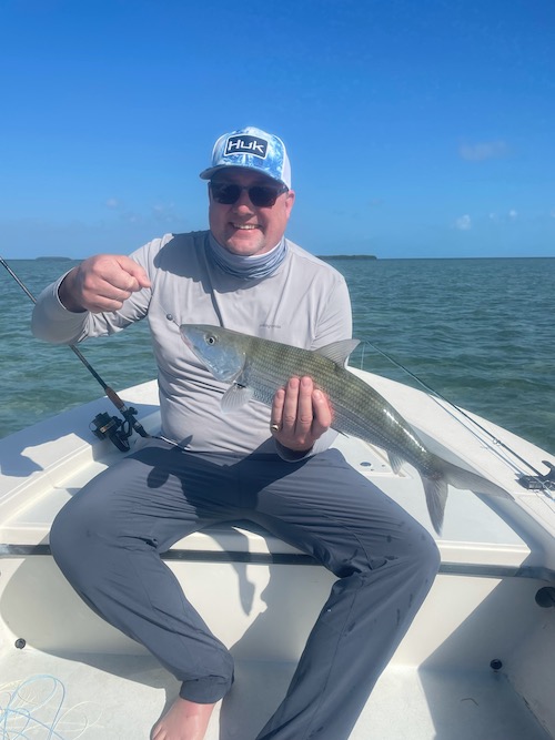Gus and Nathan each caught their first bonefish on a morning outing. Nathan caught his on Fly!