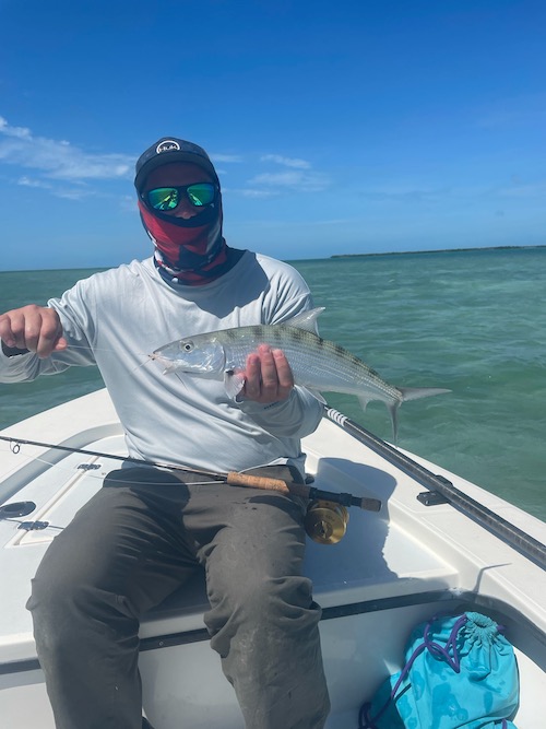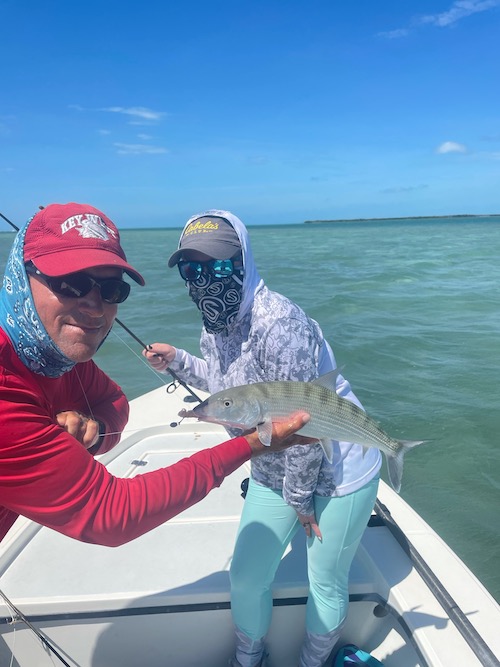 Nicole started the day with her first tarpon (130lbs) and her first permit. Then Shane and Nicole teamed up to catch 6 bonefish including 3 on fly by Shane also giving Nicole a Grand Slam! Shane topped toe day off with a nice bonefish..