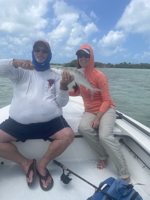 Chrissy and her dad teamed up to catch 5 bonefish including 3 on fly..