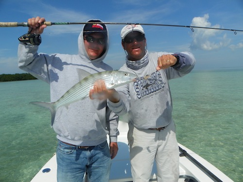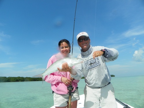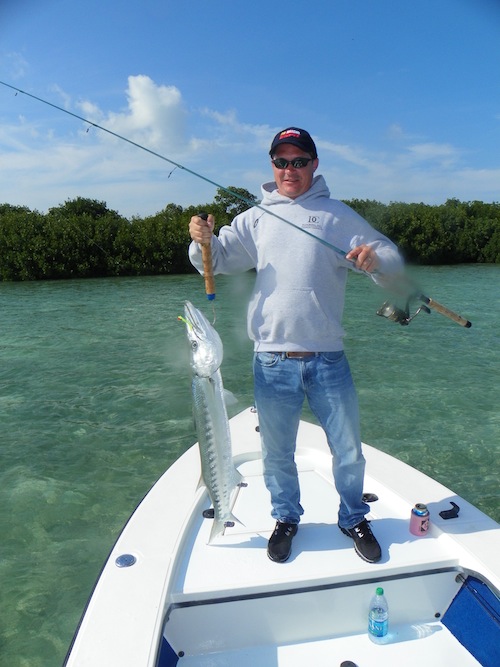 Dave started the day off with a 100lb plus tarpon. Next Dave and Fernanda teamed up to catch 2 bonefish. Dave topped the day off with a couple big barracuda...
