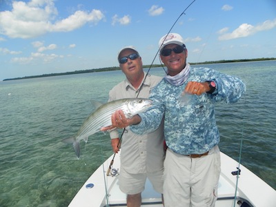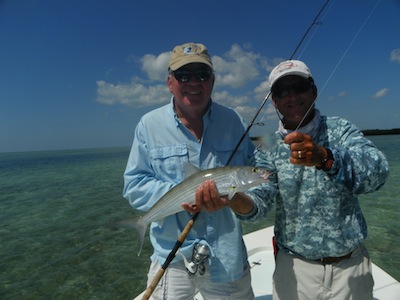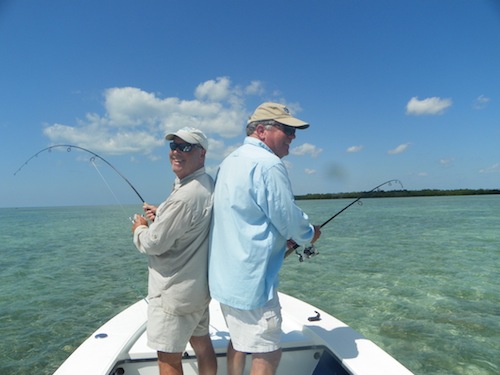 Jerry and Jeff started the day off by each catching big tarpon. They then teamed up to catch 7 nice bonefish. Jerry topped the day off with a nice permit giving him a grand slam... Thanks for the ODU sweatshirt.