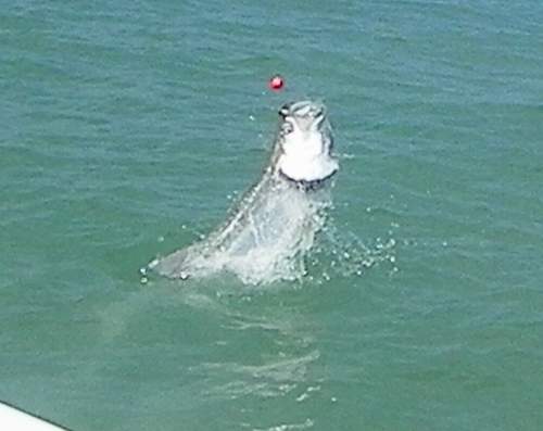 Mark proudly watched Mike catch a big tarpon.