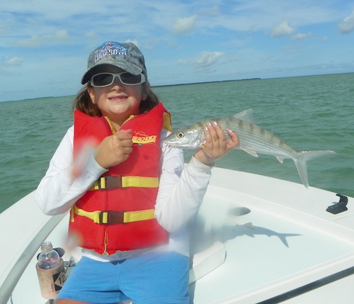 My 8 year old daughter Emily hooked and landed her first tarpon and 80lber on a morning outing. Emily topped the day off with 2 bonefish on a afternoon outing.