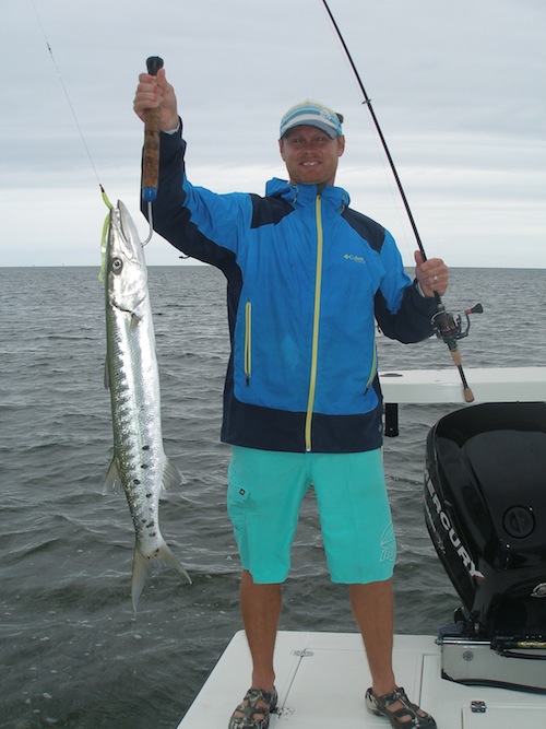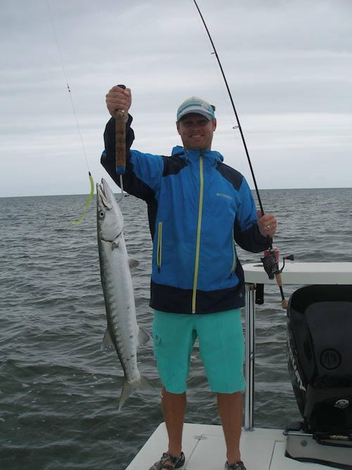 While waiting for a weather window to complete their trip on the Qualifier from Nags Head NC to Isla Mujeres, Mexico. Fin and Chris spent a day on the flats catching several nice barracuda...