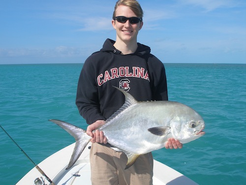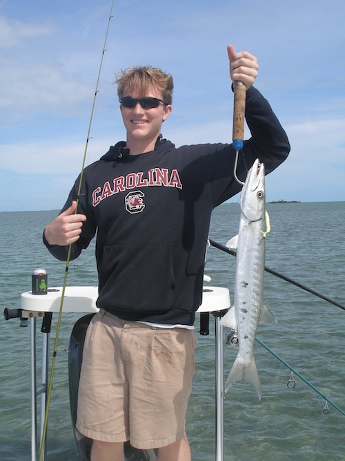 Rob proudly watched Thomas catch his first barracuda and his first permit.