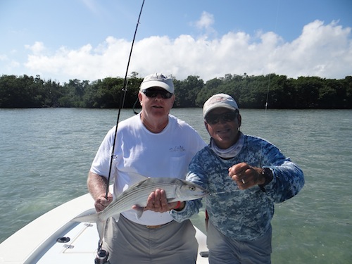 Warren and Earl started the day off by teaming up to catch several barracuda. ext Warren and Earl each caught a bonefish. Warren topped the day off with a nice permit..