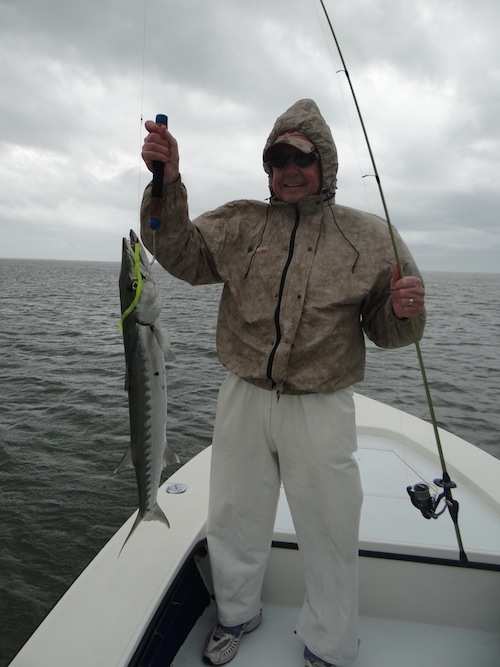 Linda proudly watched Larry battle the elements to catch several nice barracuda.
