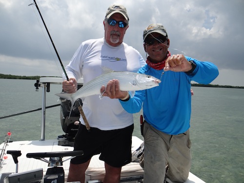 Mike and Tom started the day off with 2 big tarpon. Next Mike caught a big permit. Mike topped the day off with a nice bonefish giving him a Grand Slam and OVERTIME Charter its 925th Grand slam! Great job Guys!
