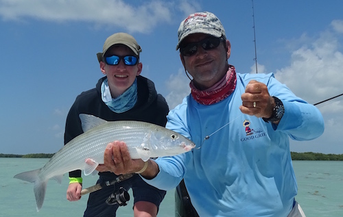 Luke started the day off with a 140 lb plus tarpon. Mark and Luke teamed up to catch 22 bonefish.