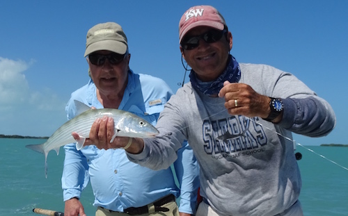 Steve and Wally teamed up to each catch a bonefish and Steve caught a big barracuda...