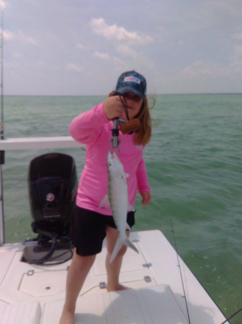 Charley with on of the 7 bonefish she caught....
