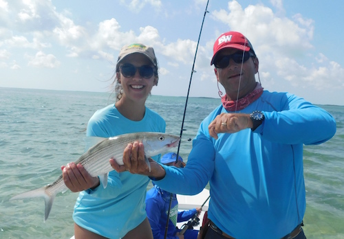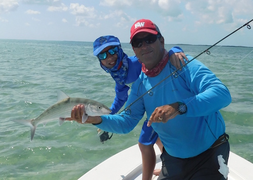 Scott proudly watched Dawson and Kayla team up to catch 16 bonefish...