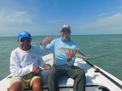 Jim and Mark teamed up to catch 10 bonefish including 2 on fly by Mark...