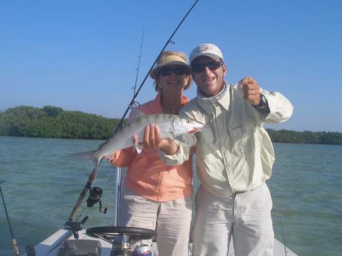 John and Cindy teamed up to catch 4 bonefish and John caught hi first tarpon in a morning half day.