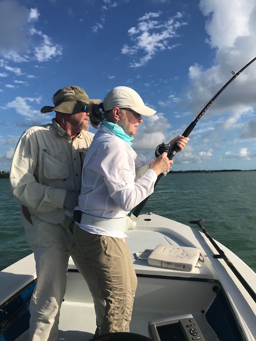Karen started the day off with a big tarpon and Denis and Karen topped the day off with 5 bonefish..