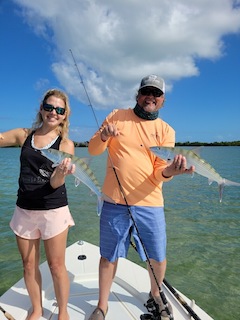 Stacy proudly watched Nicole catch a tarpon, snook and 2 bonefish and topped the day off with his own bonefish...