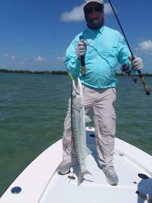 Ned caught a big tarpon and 2 barracuda and teamed up with Mike to catch 3 bonefish...
