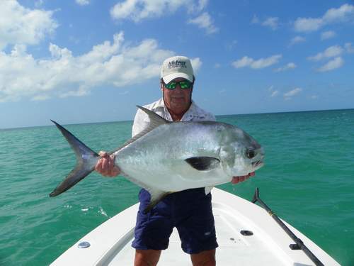 Joe started the day off with 2 big tarpon. Joe then caught 2 nice bonefish and a tarpon on light spin. Joe topped the day off with a nice permit giving him a Grand Slam...