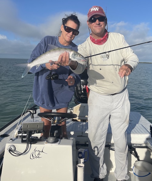 Jimmy and Trish teamed up to catch 6 bonefish and a few barracuda on a morning outing..