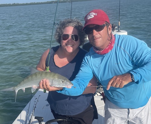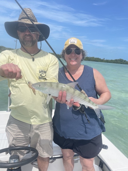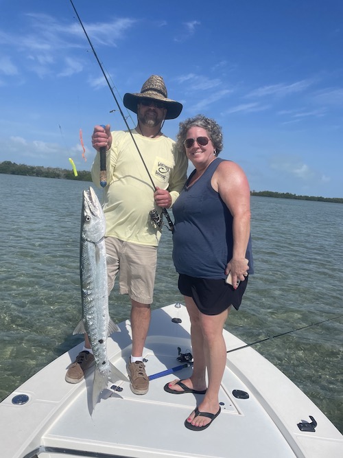 Paul and Shannon teamed up to catch 8 bonefish. Paul caught two 50" barracuda and Shannon topped the day off with a 25lb. permit...