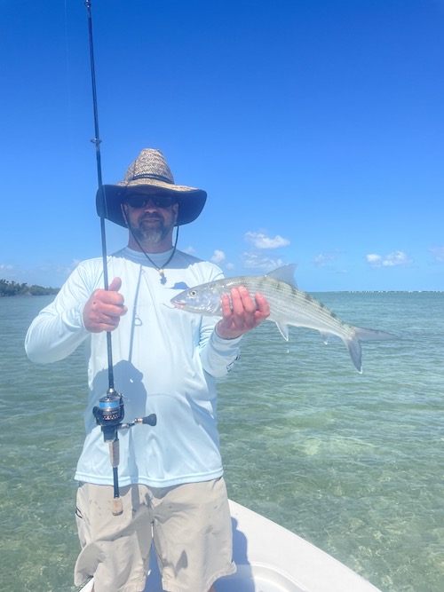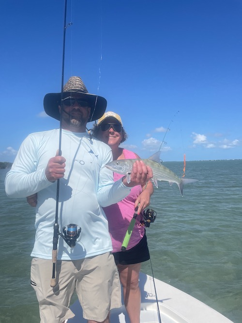 Shannon started the day off with a 125lb. tarpon, 15lb permit and a bonefish giving her a Grand Slam... Paul then caught 2 bonefish and a permit. Shannon topped the day off with a nice barracuda...