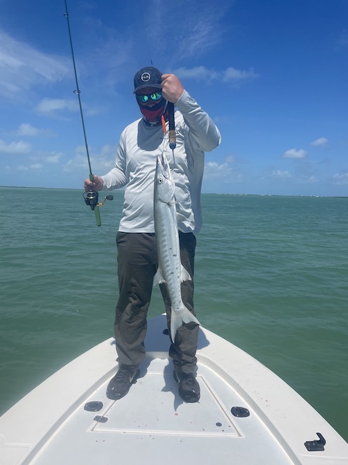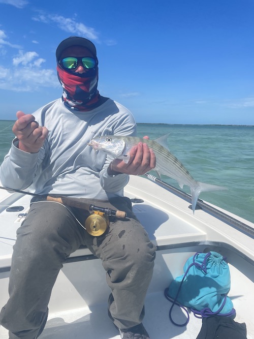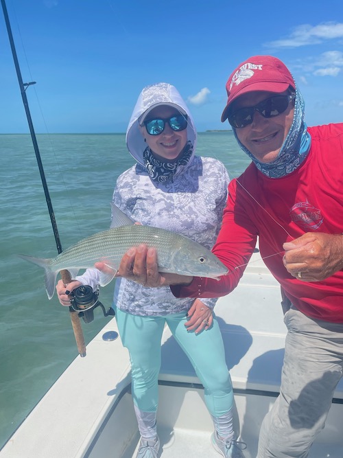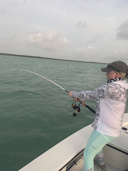 Nicole started the day with her first tarpon (130lbs) and her first permit. Then Shane and Nicole teamed up to catch 6 bonefish including 3 on fly by Shane also giving Nicole a Grand Slam! Shane topped toe day off with a nice bonefish..