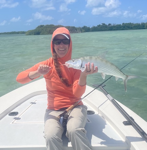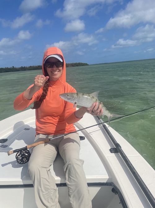 Chrissy and her dad teamed up to catch 5 bonefish including 3 on fly..