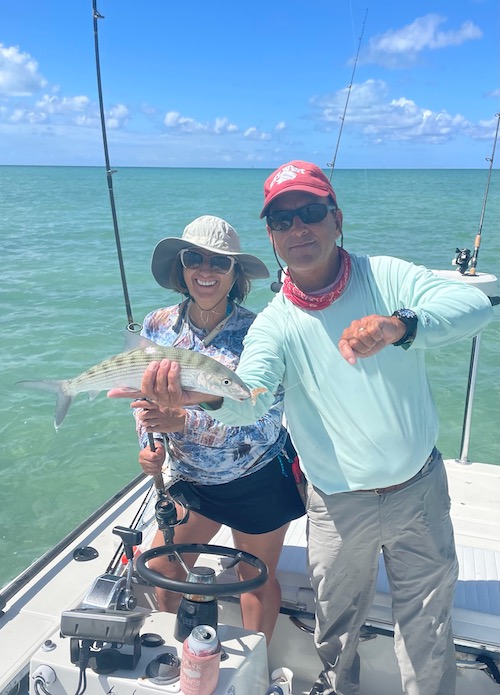 Frank and Mia teamed to catch a big tarpon and 5 bonefish on a morning outing...