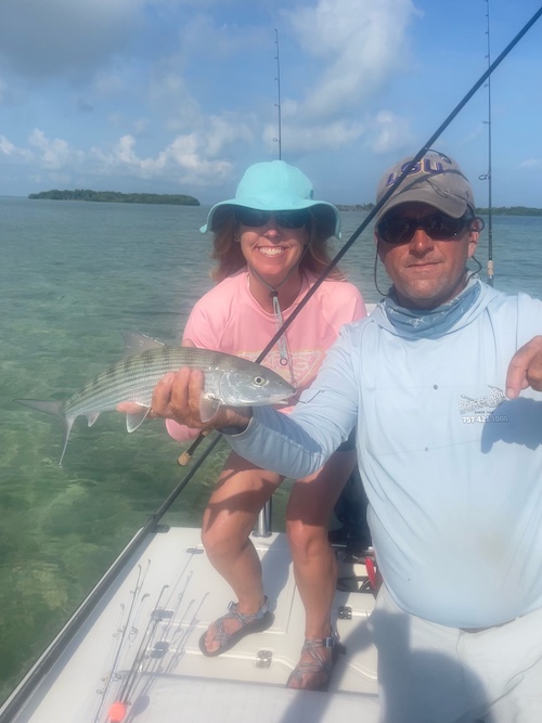 Mike and Sylvia teamed to catch a big tarpon and 4 bonefish....