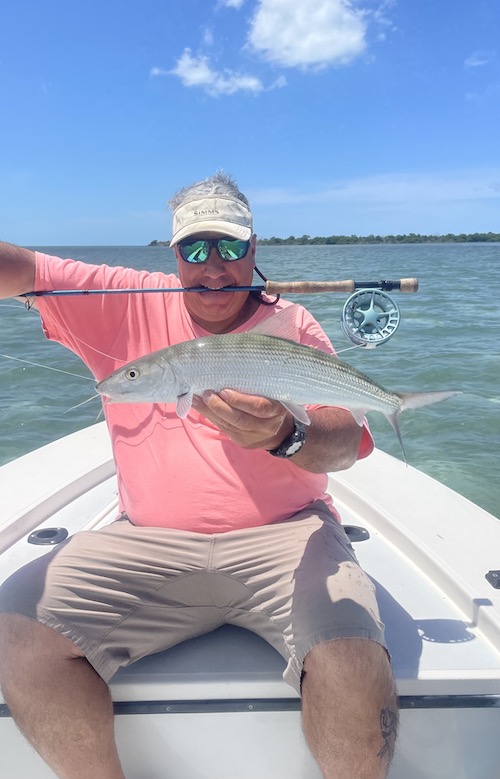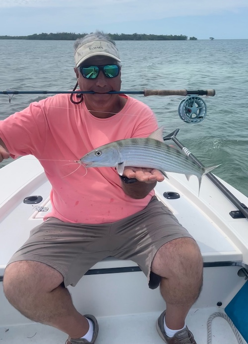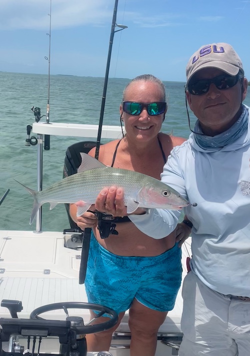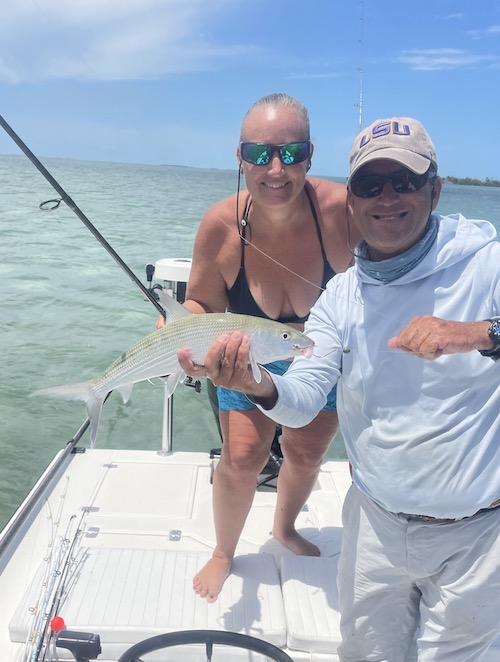 Jim and Christine teamed up to catch 3 big tarpon (170lber for Jim) and 12 bonefish (2 on fly for Jim.)