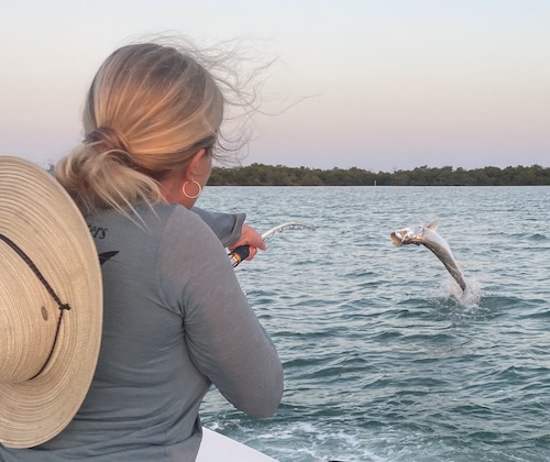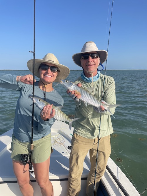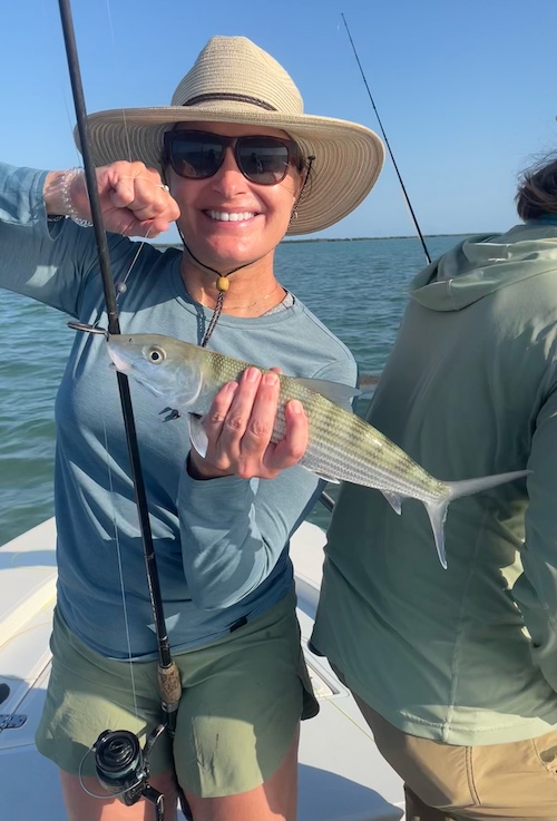 Whitney and Michelle teamed up to catch a big tarpon and 5 bonefish including 4 on fly by Whitney...
