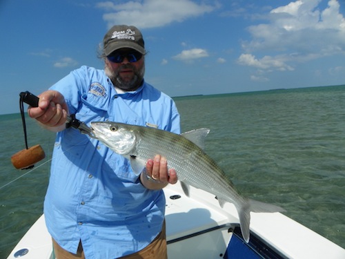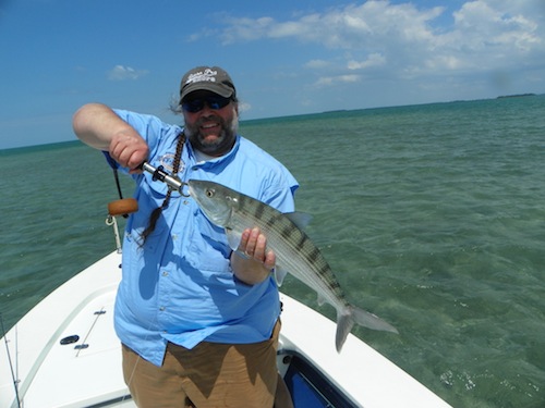 John started the day off with a bunch of small barracuda . John topped the day off with 14 bonefish...