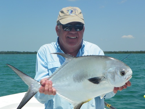 Jerry and Jeff started the day off by each catching big tarpon. They then teamed up to catch 7 nice bonefish. Jerry topped the day off with a nice permit giving him a grand slam... Thanks for the ODU sweatshirt.