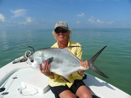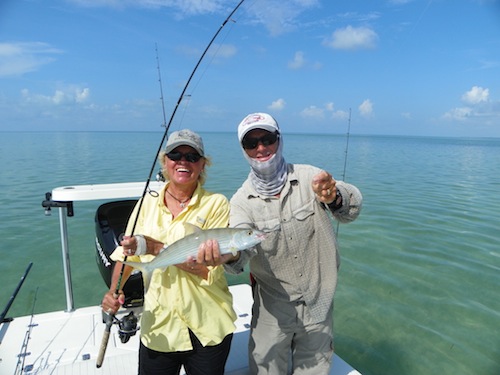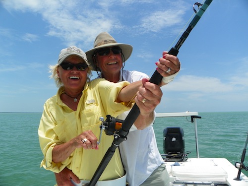 Linda started the day off with her first permit. Next Linda caught her first bonefish. Larry an Linda topped the day off by each catching tarpon giving Linda a Grand Slam..