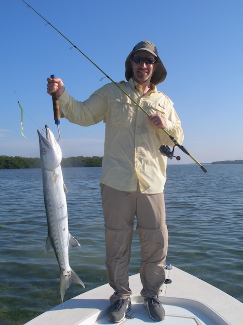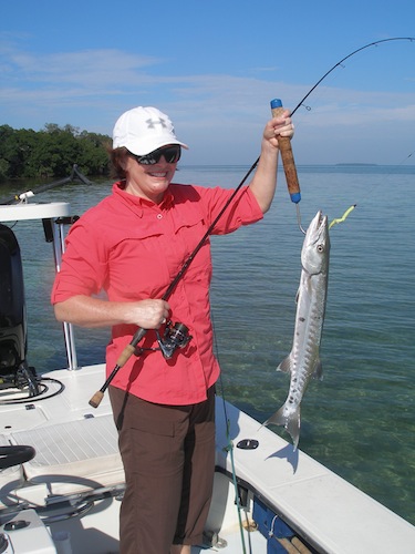 Peter and Julie started the day off by catching several nice barracuda. Next they caught several sharks. Peter then caught a big permit. Peter topped the day off with a big bonefish...