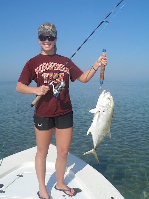 Jimmy proudly watched his daughter Hunter catch a nice Jack and her first permit.