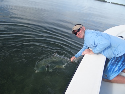 Phil started the day off with a nice tarpon. Next Phil caught 3 permit including a 35lber.