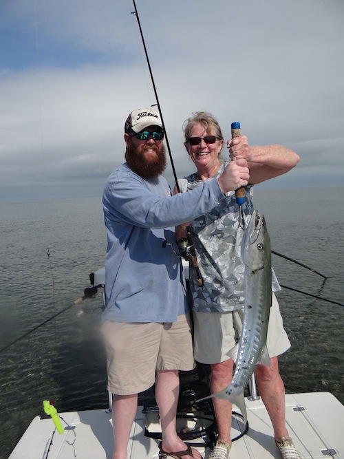 Linda celebrated her birthday with her son Hunter on the flats. They started off by teaming up to catch a bunch of big barracuda. Next Hunter caught his first bonefish. Linda topped the day off with her first permit. Happy Birthday Linda!!!