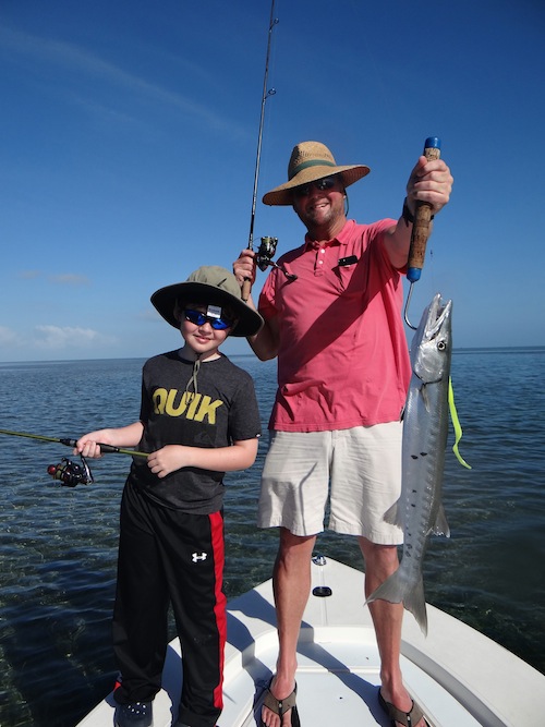 Ben proudly watched his 8 year old son Benny catch his first barracuda and several small sharks in a half day outing.