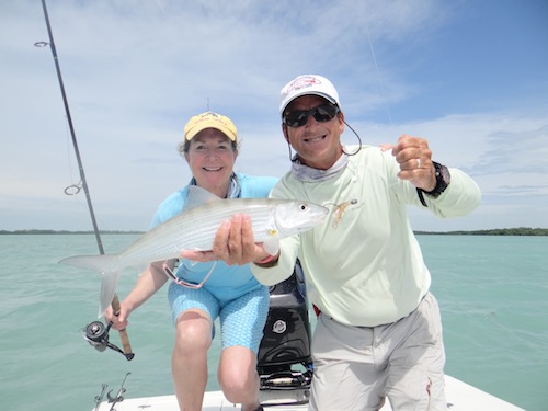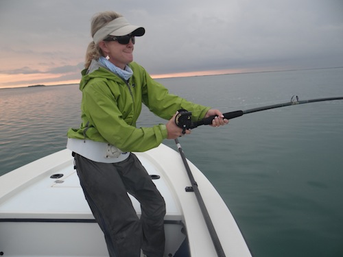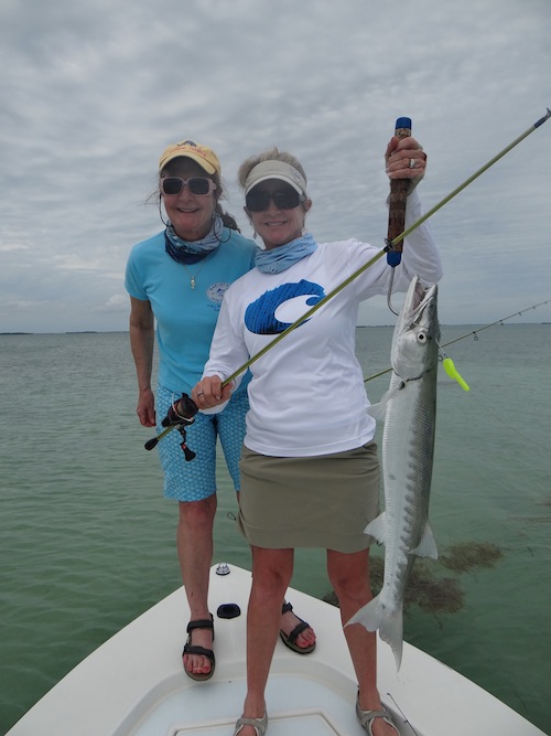 Annah started the day off with a nice tarpon. Next Linda caught 2 bonefish. Annah and Linda topped the day off by teaming up to catch several barracuda.
